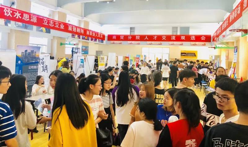 2019年6月11日下午,商务贸易分院2020届毕业生人才交流双选会在学院体育馆举行。这次双选会是分院历届参会单位最多,参与学生最多的一届。80余家单位到场,其中50余家校企合作单位,还有永康市人力资源协会秘书长亲自带队20余家企业前来参加双选会,还有不少是历届毕业校友创业公司以及所在的就业单位,均向在校生抛出了橄榄枝。分院17级、18级3+2、五年制600余名学生到场参加本次双选会。