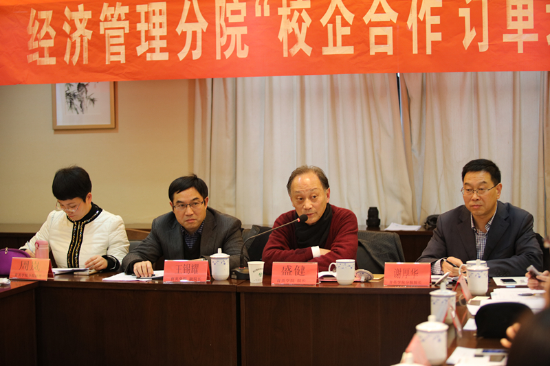 2016年12月15日,经济管理分院“校企合作 订单培养”研讨会在十楼会议室举行。学院院长盛健,党委书记、副院长王锡耀出席,来自杭州酒店和物管行业的13家合作企业17位总(副)经理或人事总监,学院教务处、产学合作处、经管分院主要干部、酒店管理专业和物业管理专业专任教师参加会议。分院院长助理周岚主持会议。 (经济管理分院 谢剑峰)