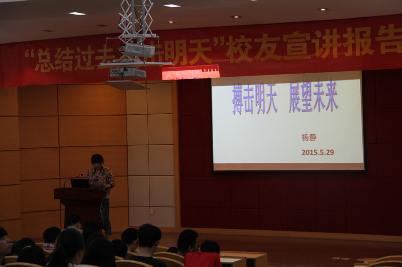 2015年5月29日晚上19:00时,经济贸易系在三楼报告厅召开了“总结过去,搏击明天”校友报告会。经贸系主任谢厚华老师、党总支书记田翔老师、实践教研室全体老师以及2015届毕业生参加了此次报告会,报告会由学工秘书余国浩主持。