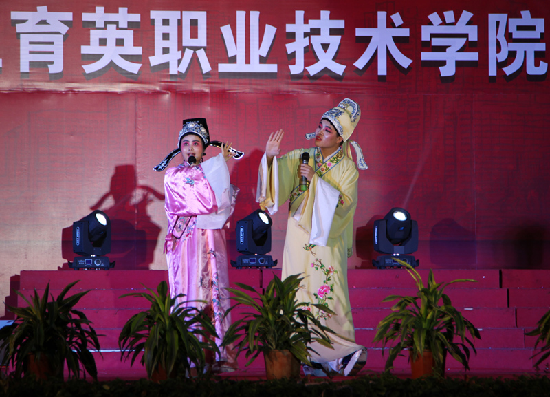 经贸系师生共同演绎太极拳《风生水起》,一动一静铮铮傲骨,一招一式行云流水。大学生艺术团器乐队的古筝齐奏《最炫民族风》、戏剧队的越剧表演《十八相送》、工商系诗朗诵《我心飞翔》、艺术系创意朗诵《六十六万背后的故事》、书友协会的诗朗诵以及信息系表演的相声,都给观众留下美好印象。