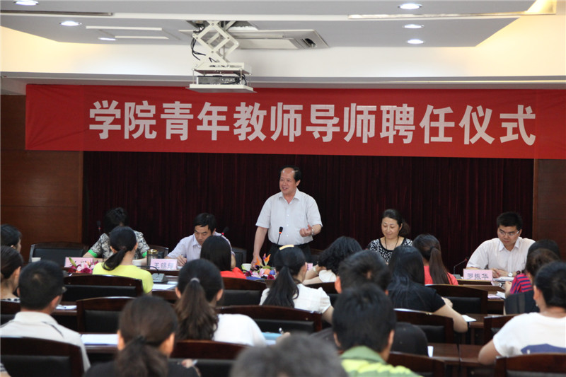 王锡耀宣读了《学院关于聘请27位副高以上教师担任30名青年教师业务导师的决定》,阐述了青年教师导师制实施的意义、目的、要求、管理和考核等。希望青年教师能更好更快地提高教学科研水平,深刻理解青年教师导师制的意义和深远影响。