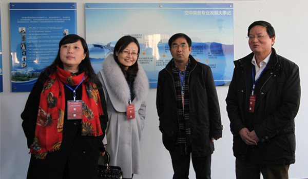 汇报会结束后,专家组在学院领导陪同下,参观考察了民航空客330全真模拟训练舱、安检实训室、物管专业实训室、艺术系创新创业实训基地、健身房、警体实训室等。