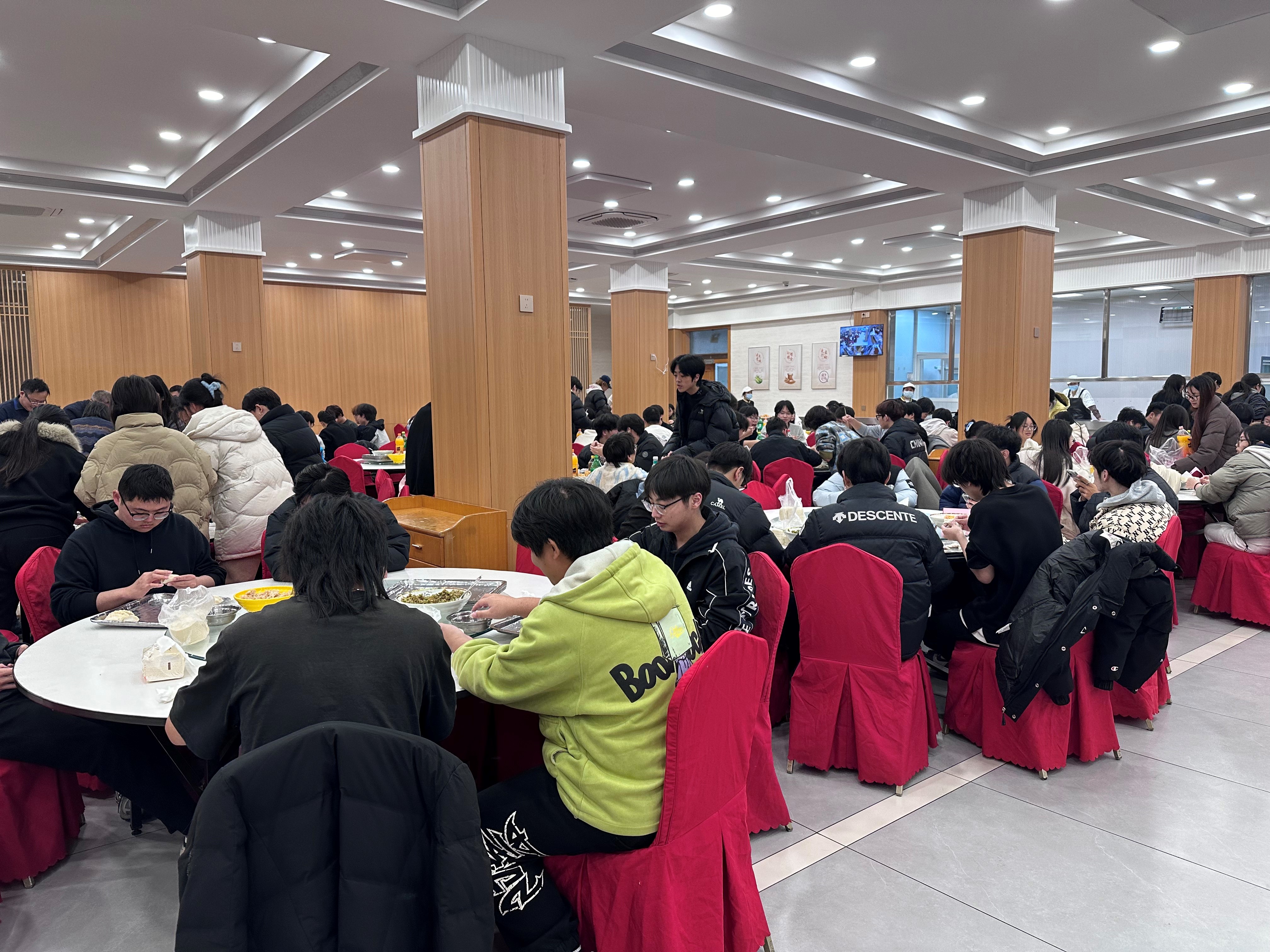 不久后,一盘盘热气腾腾的饺子陆续端上餐桌,鲜香气息瞬间弥漫整个教工食堂。同学们围坐畅谈,细细品尝自己亲手包制的饺子,热气氤氲中,一张张笑脸格外灿烂。大家席间分享学习生活中的趣事,交流跨境专业的学习心得与未来规划,初入校园的陌生感在烟火气中悄然消散,班级凝聚力与归属感在欢声笑语中持续升温。25跨境班坦言:“这是我第一次在学校过冬至,和学长学姐一起包饺子、话民俗的经历特别温暖,让我快速融入了跨境班这个大家庭。”