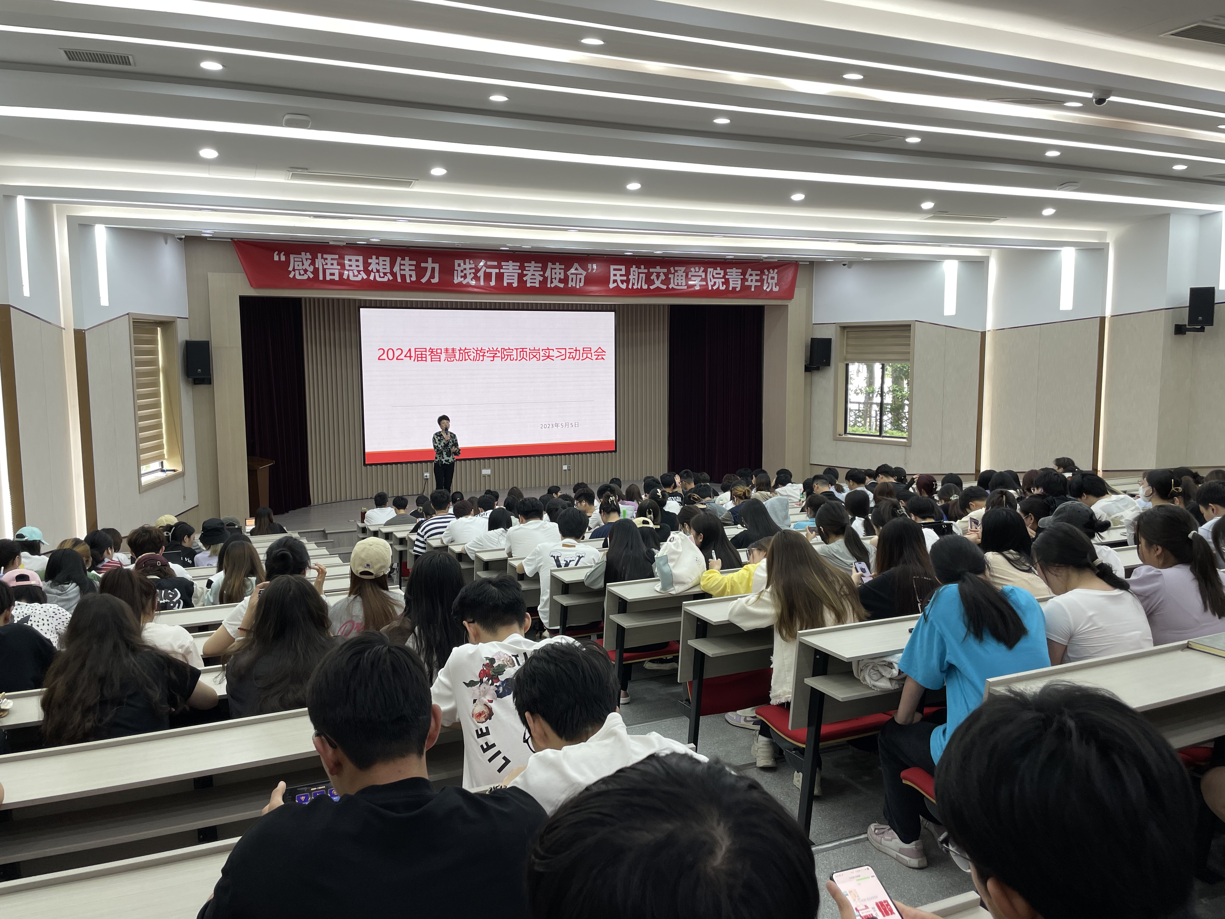 为全面贯彻和宣传学院《实习管理实施细则》相关规定,规范和加强学生顶岗实习工作,引导学生了解相关规定要求,提前做好实习前各项准备,智慧旅游学院于5月5日下午在三号楼1楼报告厅组织召开24届智慧旅游学院顶岗实习动员会。会议由星空彩票体育app平台周岚副院长亲自动员,21级星空彩票体育app平台全体学生参加,参加会议的还有三个教研室的专任教师。