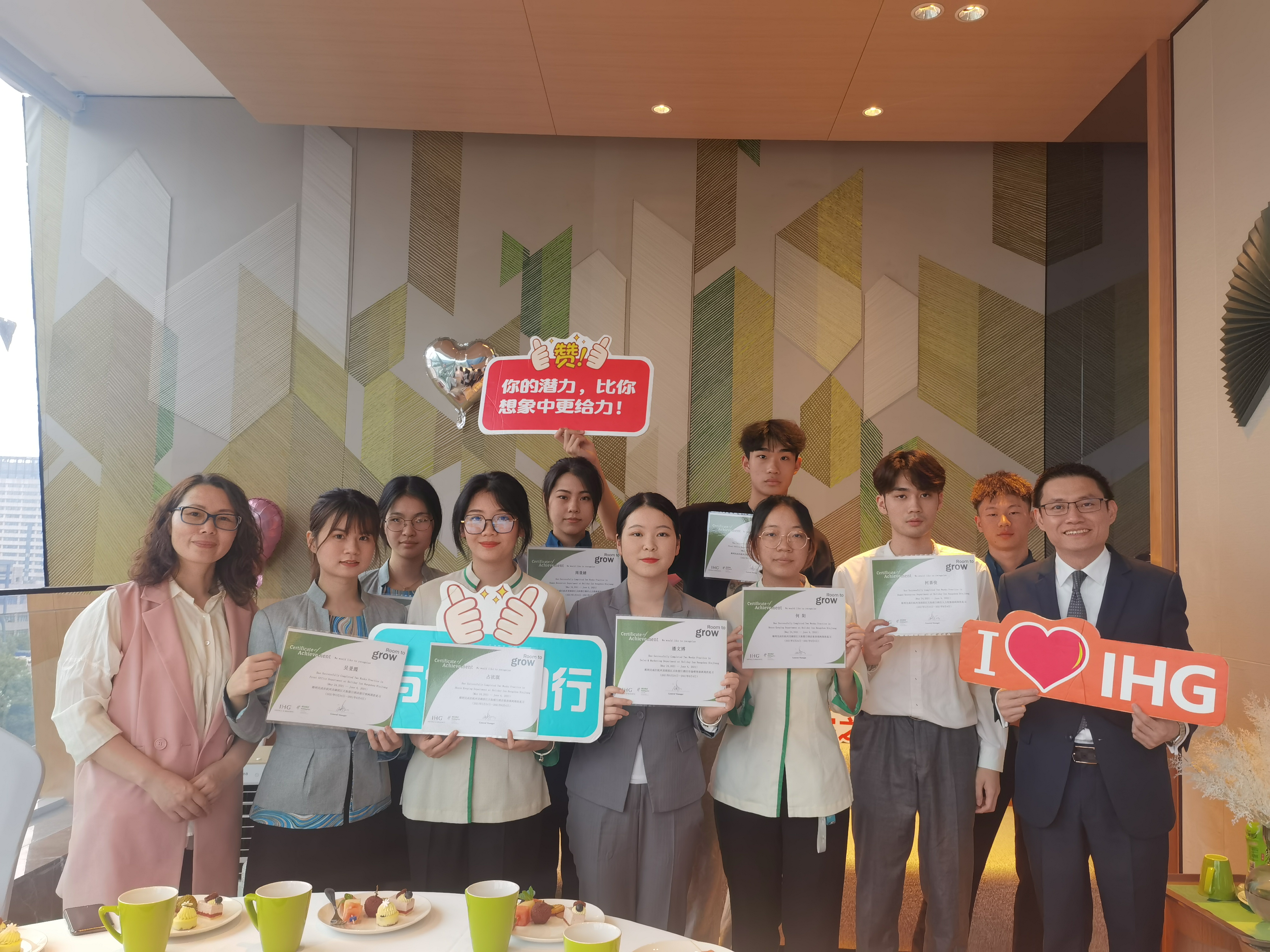 为深入贯彻落实职业教育理念,强化学生实践操作技能,根据教学计划安排,19洲际英才班学生于2021年5月24日-6月4日赴杭州洲际酒店、杭州龙湖滨江天街假日酒店、杭州拱墅智选假日酒店,进行了为期2周的跟岗见习,到目前为止跟岗见习已圆满结束。见习的两周期间,三家酒店安排了优秀的管理人员担任学生的师傅,通过看、教、试、练、问、答等环节,让学生对各岗位有更深的领悟,同时还安排部分高层管理人员给同学们做了企业文化培训以及岗位培训。在见习期间,部分岗位的同学还在师傅的指导下进行岗位操作,当了一回“职业人”。三家酒店根据学生在岗位表现,评选出刘璇、周珂逸、马天乐、陈宇航、何阳、潘文博等6位优秀实习生,并颁发了证书。