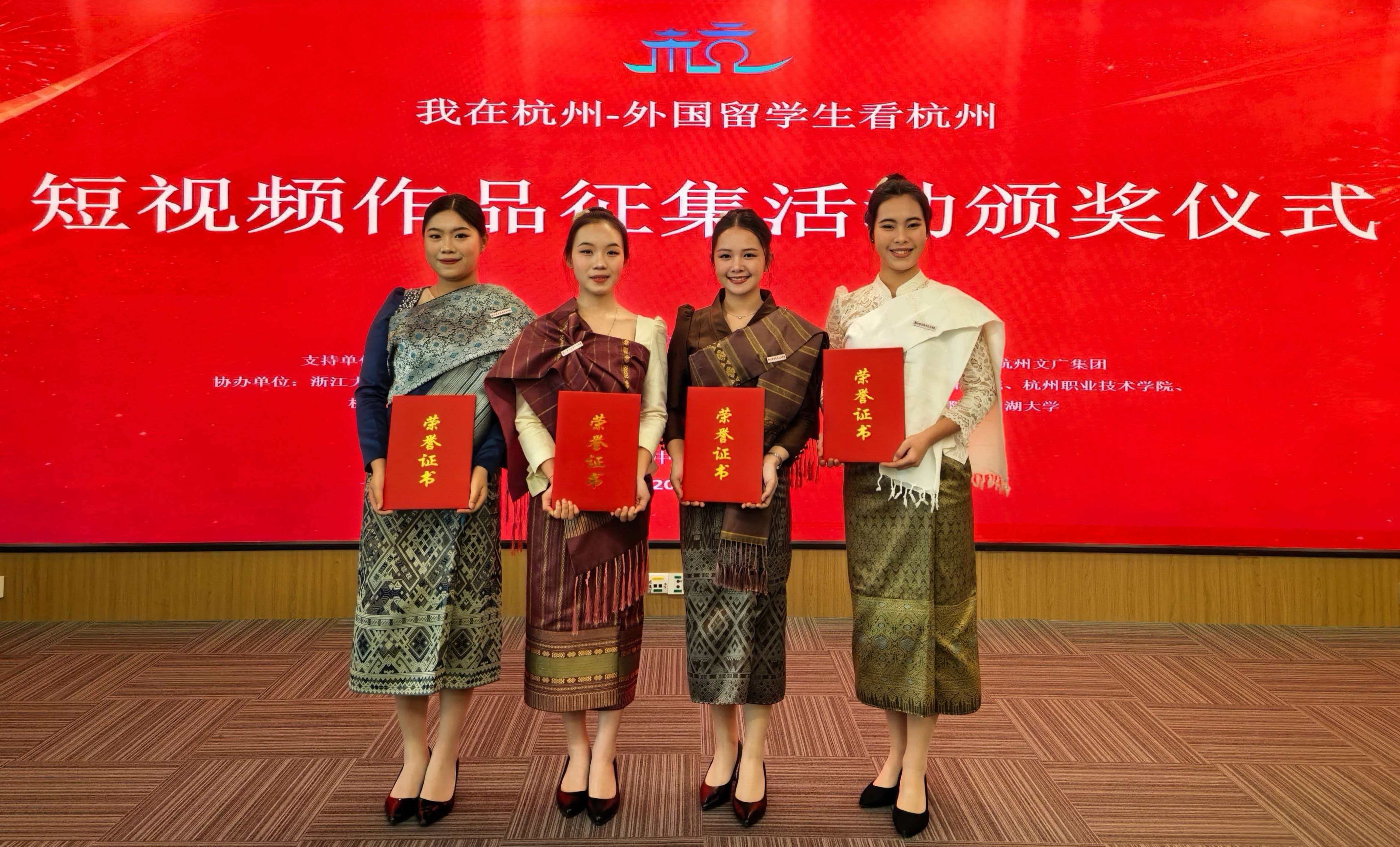 在创作过程中,我校老挝留学生们深入杭州的街巷与科创园区,用日益精进的汉语表达和数字技能,将西湖的山水、城市的脉动转化为动人影像。他们不仅用镜头语言流畅叙事,更以真挚情感展现出“知华、友华、爱华”的深厚认同,让世界看到一个传统与现代交融的鲜活杭州,展示了汉语水平和专业技能。