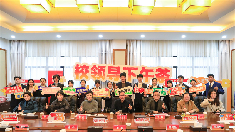 12月24日,学校九楼会议室清茶飘香。校长丁金昌,党委副书记、副校长王敏,学务部、团委等相关负责人,与16名来自不同专业、不同背景的学生代表围桌交流,围绕学习、竞赛、实习、社团、班会等话题展开深入讨论。