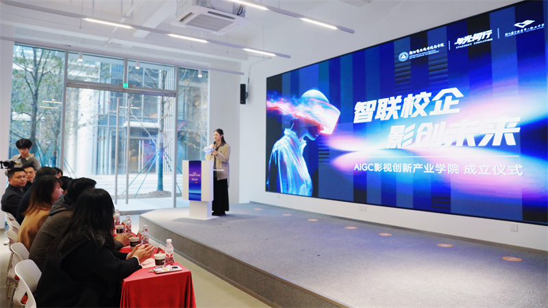 12月18日,浙江育英职业技术学院AIGC影视创新产业学院成立仪式在与光同尘文化科技有限公司杭州总部举行。