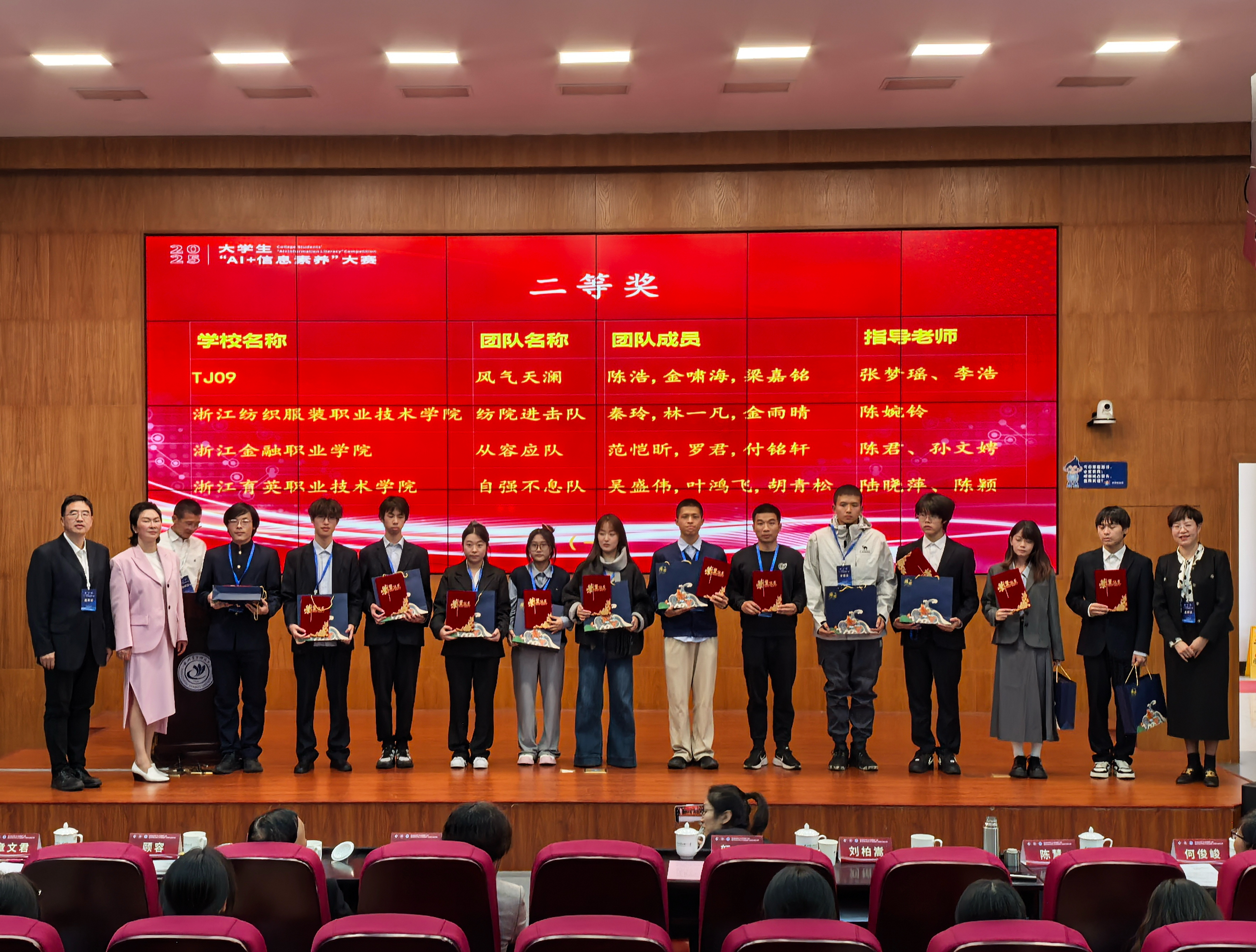 近日,2025年浙江省大学生“AI+信息素养”大赛获奖名单公布。我校吴盛伟、叶鸿飞、胡青松团队凭借清晰的逻辑思维、熟练的AI工具运用能力以及高效的团队协作,获高职高专赛道二等奖。陆晓萍、陈颖获“优秀指导老师”称号。