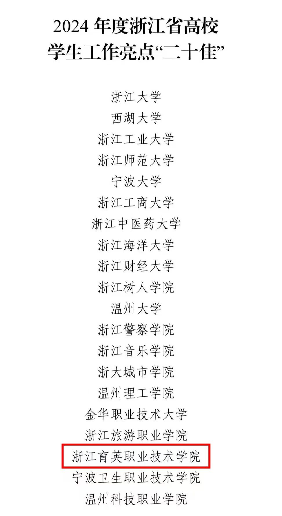 近日,2024年度浙江省高校学生工作亮点“二十佳”名单公布。我校学生工作成功入选,高职院校仅5所入选。