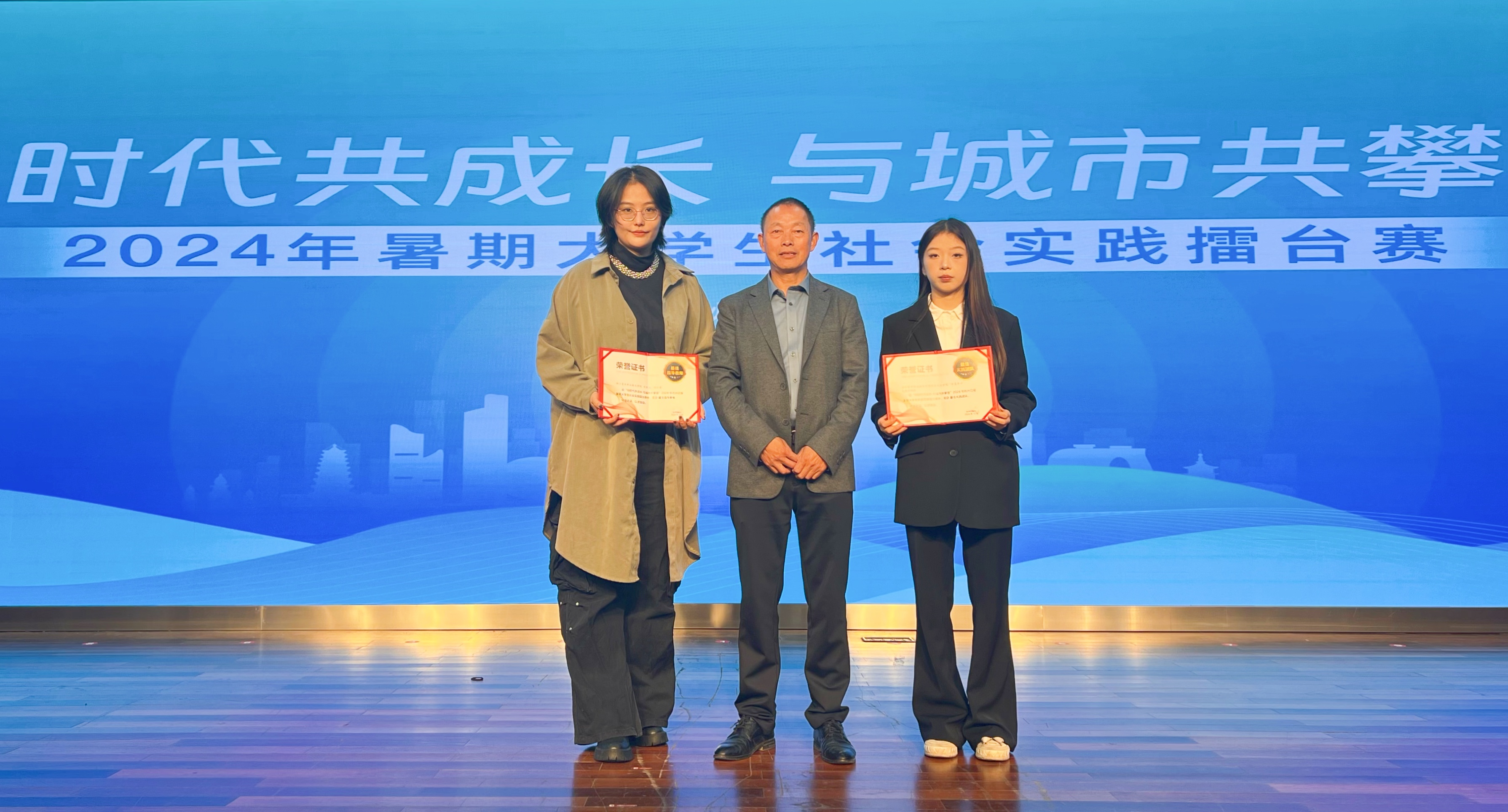 11月9日,“与时代共成长 与城市共攀登”2024年杭州日报暑期大学生社会实践擂台赛颁奖暨成果展示活动举办。在社会各方见证下,活动主办方为获奖团队、教师、单位颁奖。我校创意设计学院赴建德长宁“乡遗共兴”实践团脱颖而出,获最佳实践团队,学院团总支书记周俣涵、辅导员胡恺睿获最佳指导教师。