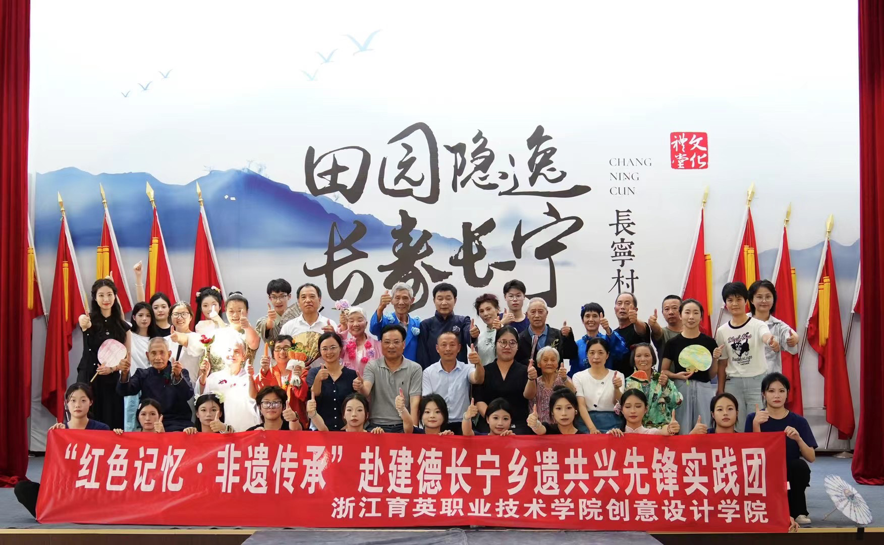 今年暑假,实践团历时7天,在长宁村开展了“非遗”手工教学、“田园隐逸·长寿长宁”乡村时尚秀、原创曲艺剧排演等活动。实践团收获了艺术作品、短视频和调研报告等成果,相关事迹得到潮新闻、杭州新闻、都市快报、建德电视台等媒体的关注报道。