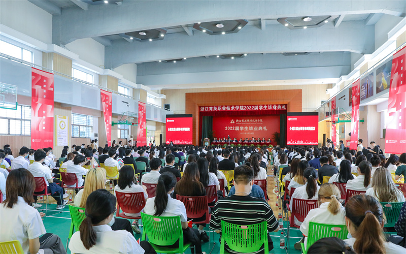 6月18日,我院2022届学生毕业典礼在体育馆隆重举行。学院终身名誉院长洪致平,执行院长黄爱平,党委书记、副院长谢鑫,副院长王敏、徐晓斌、崔海辉,阿里巴巴集团副总裁、银泰商业集团CEO陈晓东及各分院、行政处室领导出席。学生家长代表和企业代表应邀出席。全体省级和院级优秀毕业生、各分院师生代表现场参加。谢鑫主持毕业典礼。毕业典礼同时通过网络进行直播。