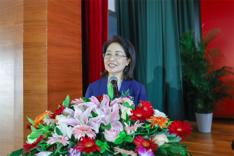 智慧旅游分院2019旅行社经营管理班苏娜盼通过视频代表老挝留学生发言,介绍了自己的成长感悟,表达了对母校的感恩和眷恋之情。