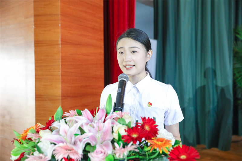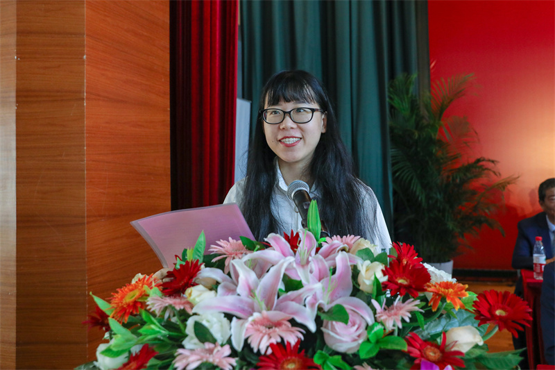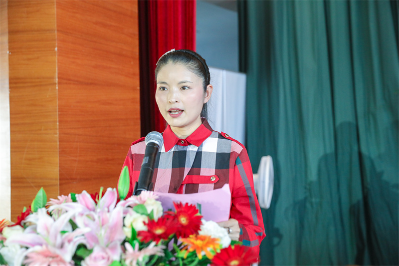 数字商贸分院国商教研室陈悦嫣代表教师发言,表达了对毕业生的深情祝福,希望同学们保有进取心和坚持的品质、保有同理心和善良的品质,一步步向梦想靠近。