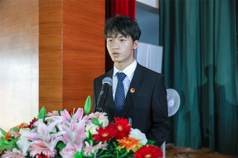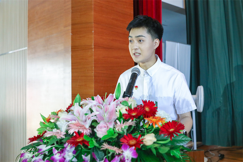 信息技术分院2020计算机应用C班郑斌杰代表在校生发言,表达了对学长学姐的美好祝愿和做好传承接续奋斗的决心。
