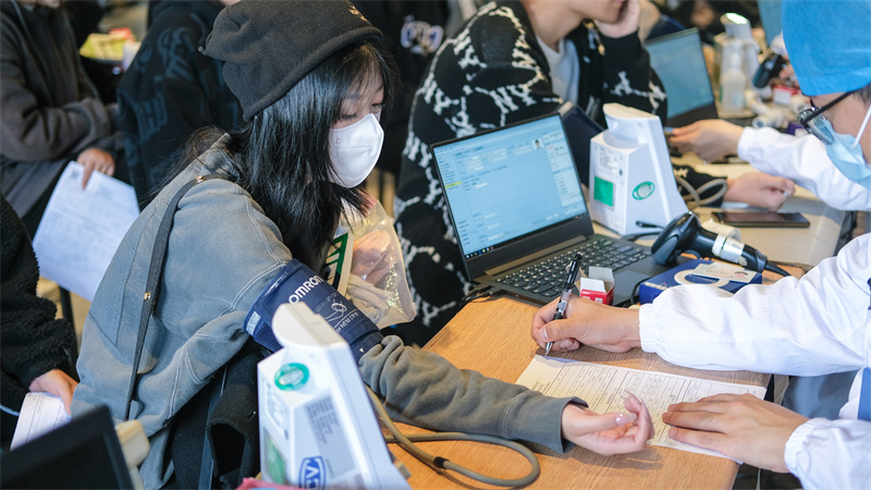 一批又一批的同学们填表、等候、抽血、休息,无偿献血工作有条不紊地进行。献血的人很多,每个人基本都要等一小时,但是没有人抱怨。每一辆献血车前排起的长龙是这个冬日里最温暖的阳光。一杯糖水,一句问候,是志愿者的关怀。耐心等待,伸出手臂,是献血者的勇敢。汩汩流动的血液,架起生命的桥梁,育英师生以热血与爱,谱写一曲生命之歌。学院荣伍社团是一支由退伍士兵组成的队伍,身穿迷彩服的他们,英姿勃发,站在献血队伍的最前列。