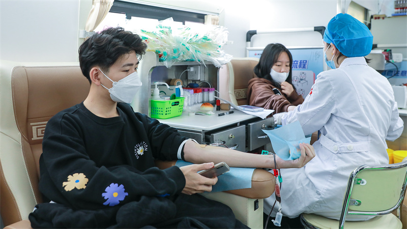 19轨道E班刘永畅:今天在接受记者采访的时候,被问到为什么会想要参加无偿献血?为什么会坚持无偿献血?一是因为想拯救生命的初心,二是受学院同学积极献血的浓厚氛围所影响。大学三年,身边参与献血的同学也越来越多,每次看着络绎不绝来排队献血的同学,我就知道,我身边有着非常多有爱心懂奉献的人。今天我是最后一个参与献血的人,傍晚的天气已微凉,血液流淌在输液管里,让我真真切切感受到了生命的温度。或许挽袖献血对我们来说,只是一件力所能及的小事,但对每一位需要用血的患者来说,这是黑暗中的火炬,是能继续活下去的希望。所以我会积极参与无偿献血,也会继续献血。很开心,这次献血还完成了“高校热血先锋”的目标。
