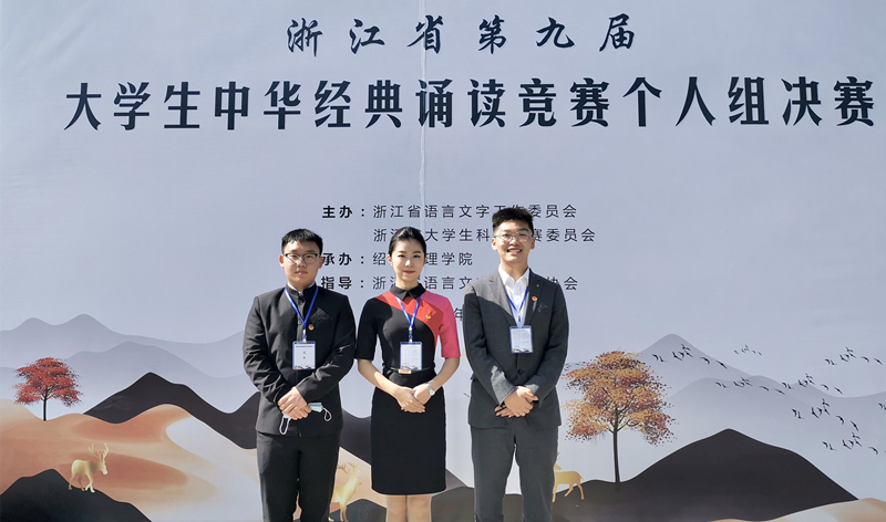 2021年10月17日,浙江省第九届大学生中华经典诵读大赛在绍兴文理学院圆满落幕。在个人组决赛中,我院学生喻佳政获一等奖,李云飞、胡燕燕分别获二等奖,指导老师董媛;柯雨欣获三等奖,指导老师高嘉佳。