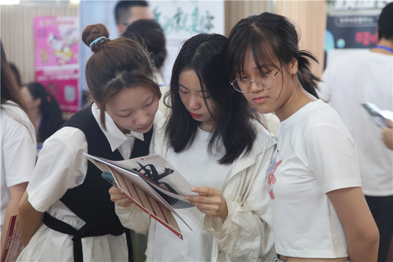 招聘会现场火热的气氛还吸引了大一学生前来观摩,提前了解招聘流程,做好职业生涯规划。