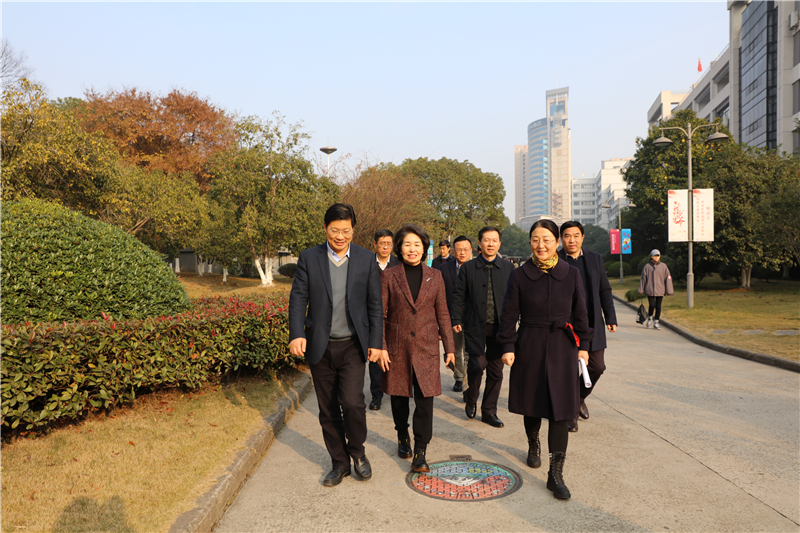 12月28日,浙江省教育厅党委副书记干武东,在教育厅组织处处长陈仁坚,宣教处处长陈雷陪同下,莅临学院调研党建和思政工作。学院领导王锡耀、黄爱平、谢鑫、王敏、徐晓斌、崔海辉,党委委员张中新、郑国军、邬佳、王贤军全程陪同调研。