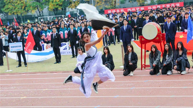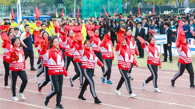 在激昂的运动员进行曲中,各分院、部、行政处室的运动员、师生代表队排列着整齐的方阵,迈着矫健的步伐,依次通过主席台。各方阵带着拿手“绝技”,在主席台前大显身手,来了一场精彩的才艺与创意展示。