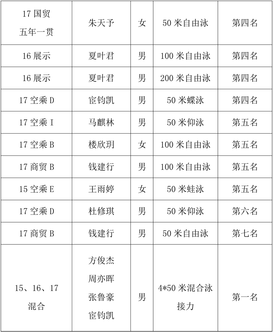我院游泳队在浙江省大学生游泳锦标赛再创辉煌