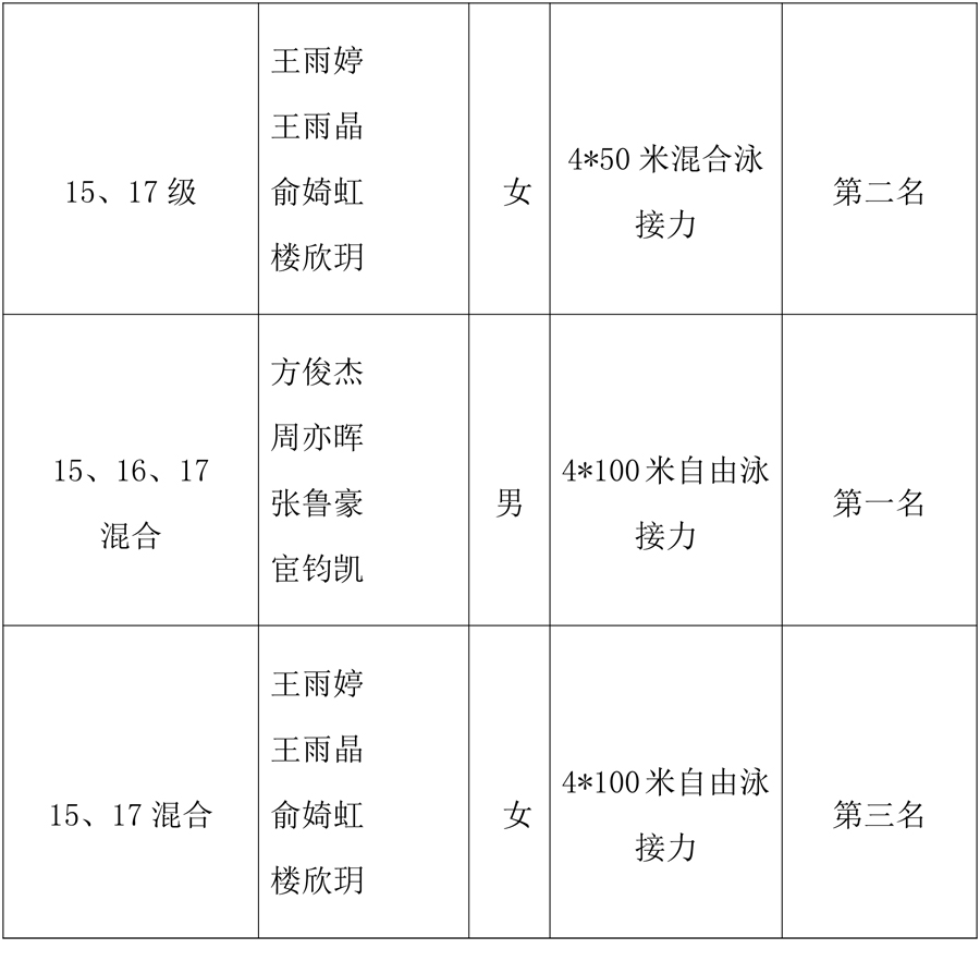 游泳队具体成绩如下: