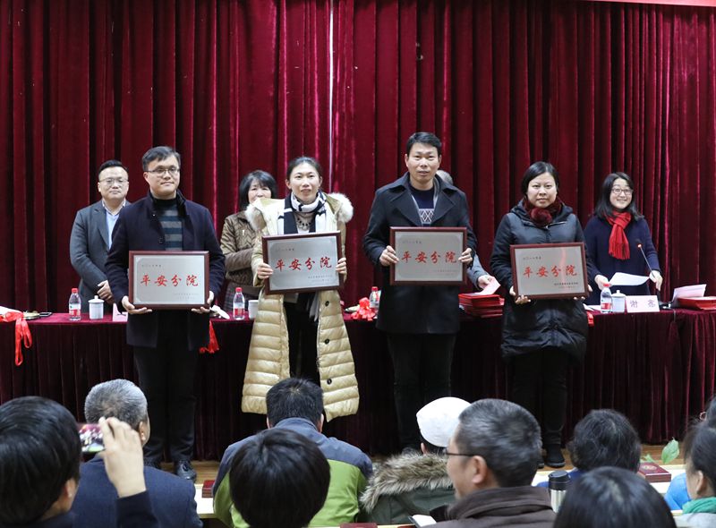 学院领导宣读表彰文件并为获奖者颁奖。黄爱平宣读在育英学院工作五年及以上教职员工表彰文件和董事长特别奖表彰决定;谢鑫宣读获得各级荣誉称号教师、校外专业技能竞赛和文体比赛优秀指导教师、首届育英好课堂微课比赛获奖教师等表彰文件;王敏宣读2017年度“平安分院”表彰决定。