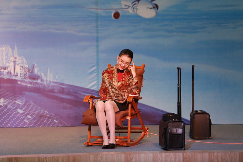 上午场比赛由职业风采展示、安全设备演示、民航知识问答三部分内容组成。职业风采展示,8名成员分成两组,通过舞蹈、情景模拟等形式展现了民航人的风采。安全设备演示,以安全服务为载体,展示参赛选手的航空服务技能;民航知识问答,每位选手展现了自己深厚的知识功底和英语口语水平。下午场比赛采用封闭式模拟情景演示,选手在比赛过程中处理随机事件,评委依据选手们的表现进行打分。