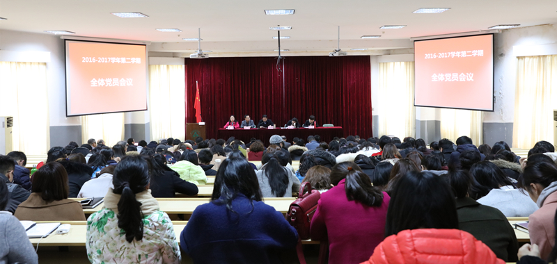 2017年2月18日,学院全体党员会议在一楼报告厅召开,党委书记王锡耀,党委副书记谢鑫,党委委员张中新、邬佳、夏瑛出席,全体党员参加。