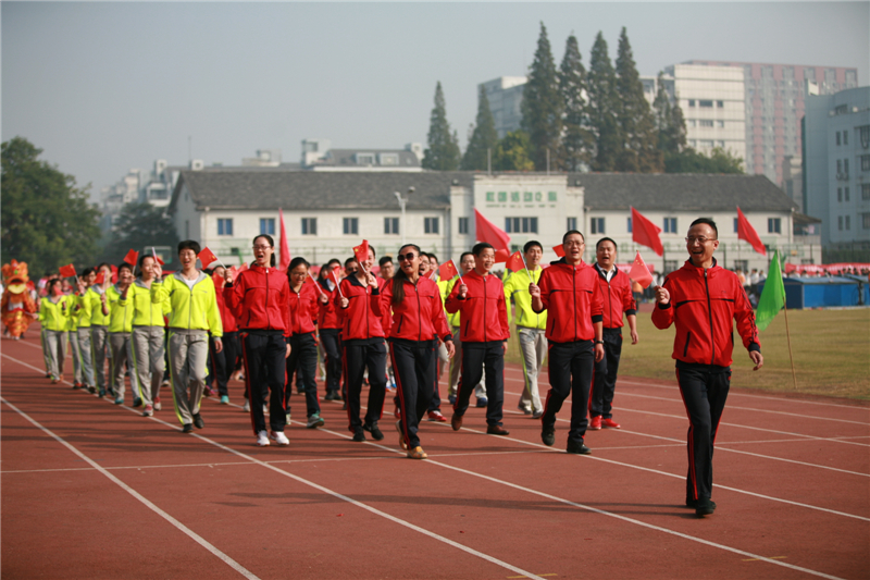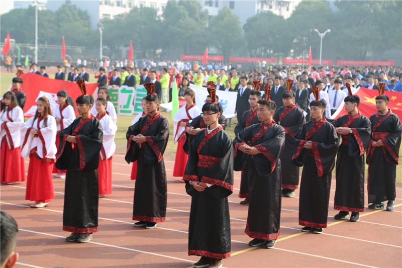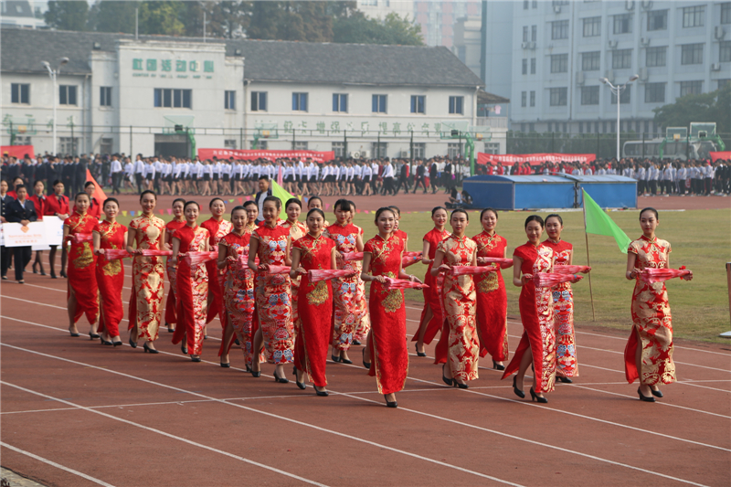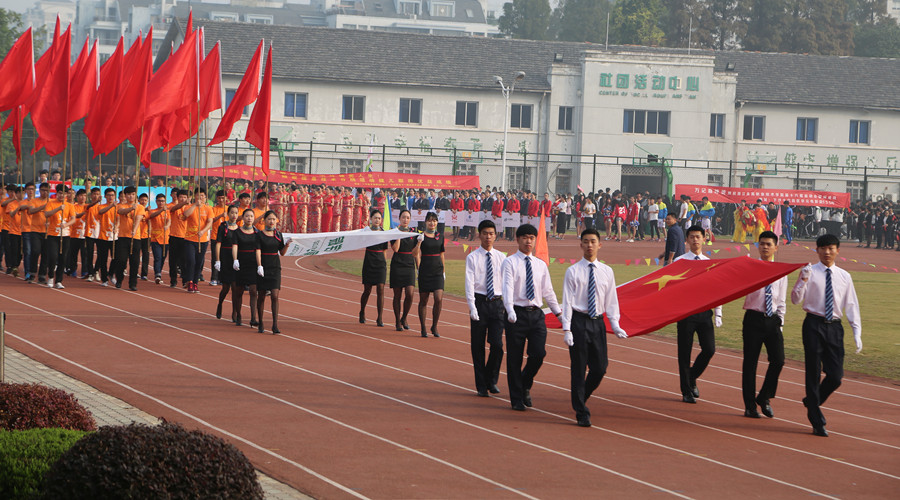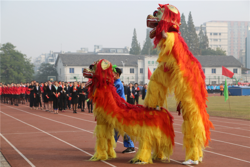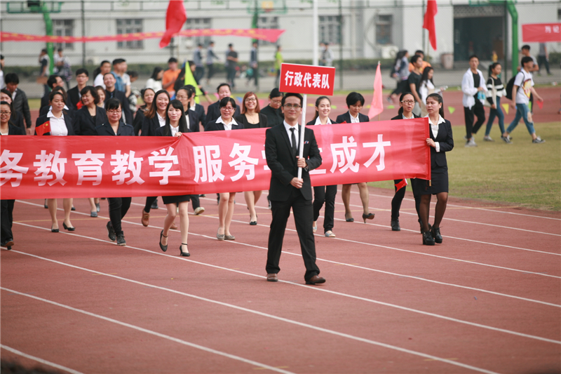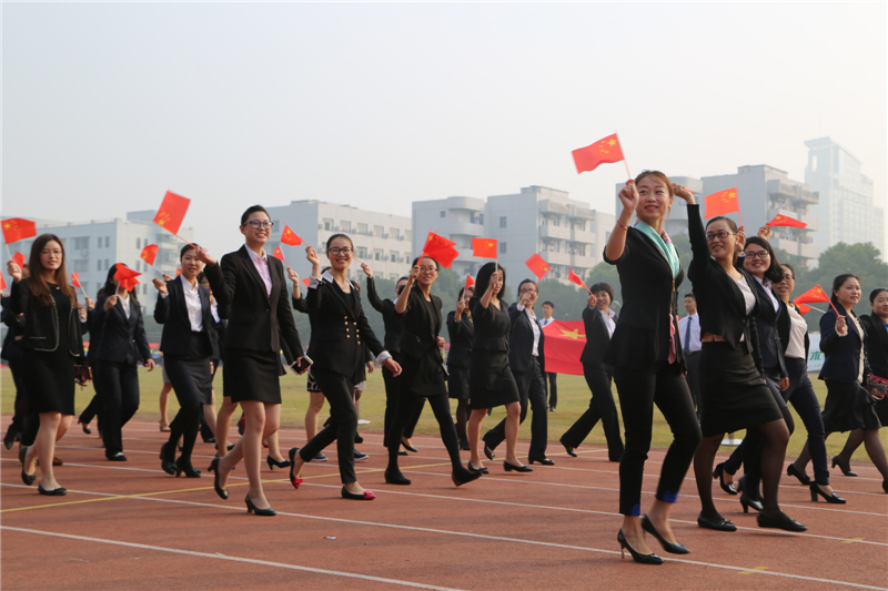 伴随着激昂的运动员进行曲,国旗方阵高举鲜艳的五星红旗走向主席台,紧随其后的是校旗方阵。接着,由学生、教师、行政人员组成的方阵喊着嘹亮的口号、迈着整齐的步伐依次经过主席台。民航交通分院方阵在礼仪表演的引领下身着靓丽的制服,信息技术分院展示信息时代潮流的多元化,商务贸易分院富有活力的舞狮和青春活力的舞蹈表演,经济管理分院的男女同学身着中国特色的汉服,创意设计分院的活力设计展示以及继续教育分院的武术表演无不彰显着育英学子积极向上的精神风貌。