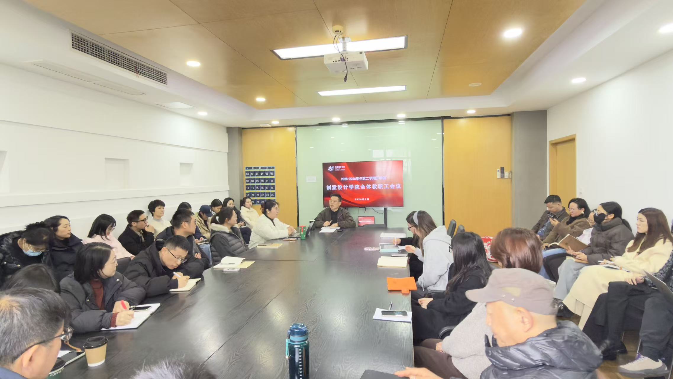为扎实做好新学期开学筹备工作,清晰界定各项工作的职责与目标,保障新学期各项事务顺利开展、稳步推进,2026年3月3日下午,创意设计学院于创意中心召开开学初教师大会。学院党总支书记兼院长宋连凯、党总支副书记兼副院长高嘉佳、副院长盛乐,以及全体教师齐聚一堂,共商新学期发展大计,会议由宋连凯院长主持。