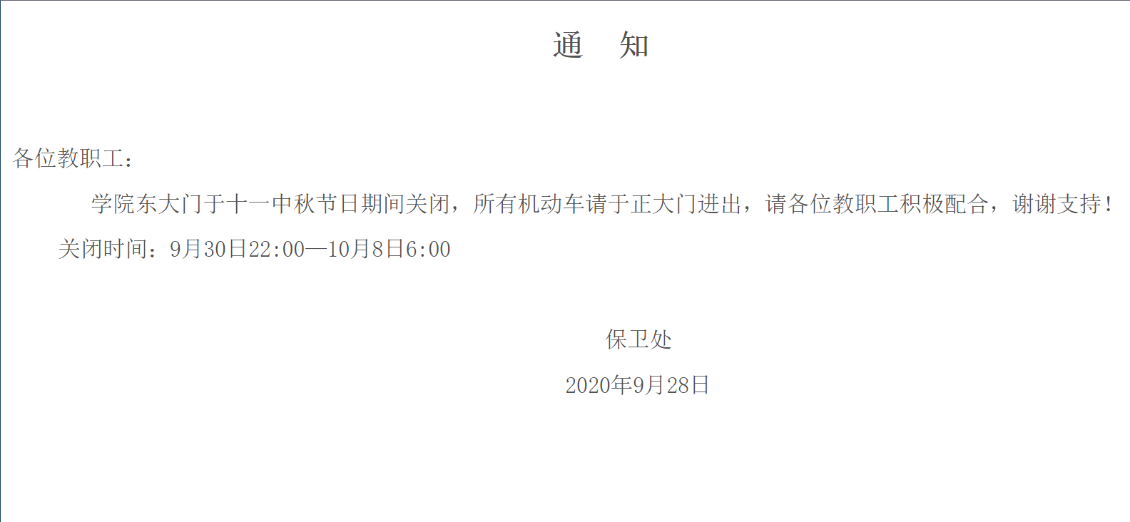 [保卫处]十一中秋节日期间机动车进出管理通知