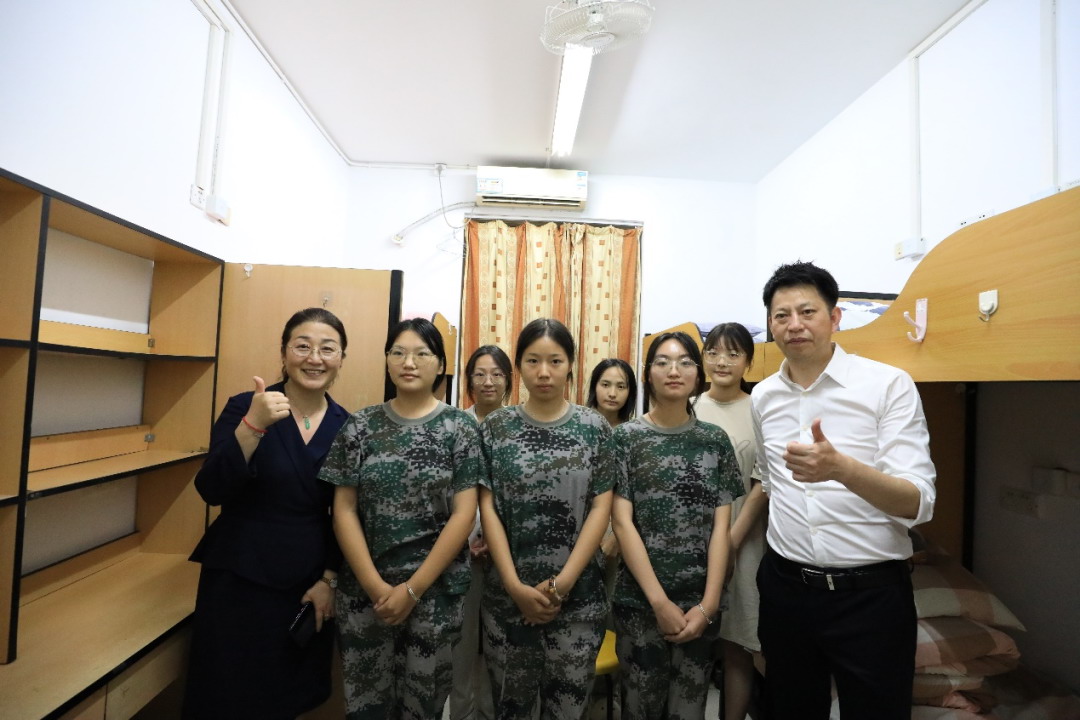 盛夏未央,初秋登场。2023年9月18日晚上,学校领导、党政中层干部分组走访学生寝室,看望2023级新生。校党委书记、副校长谢鑫老师及商贸学院领导班子来到商贸学院2023级新生寝室,将学校的关怀慰问带给新生。