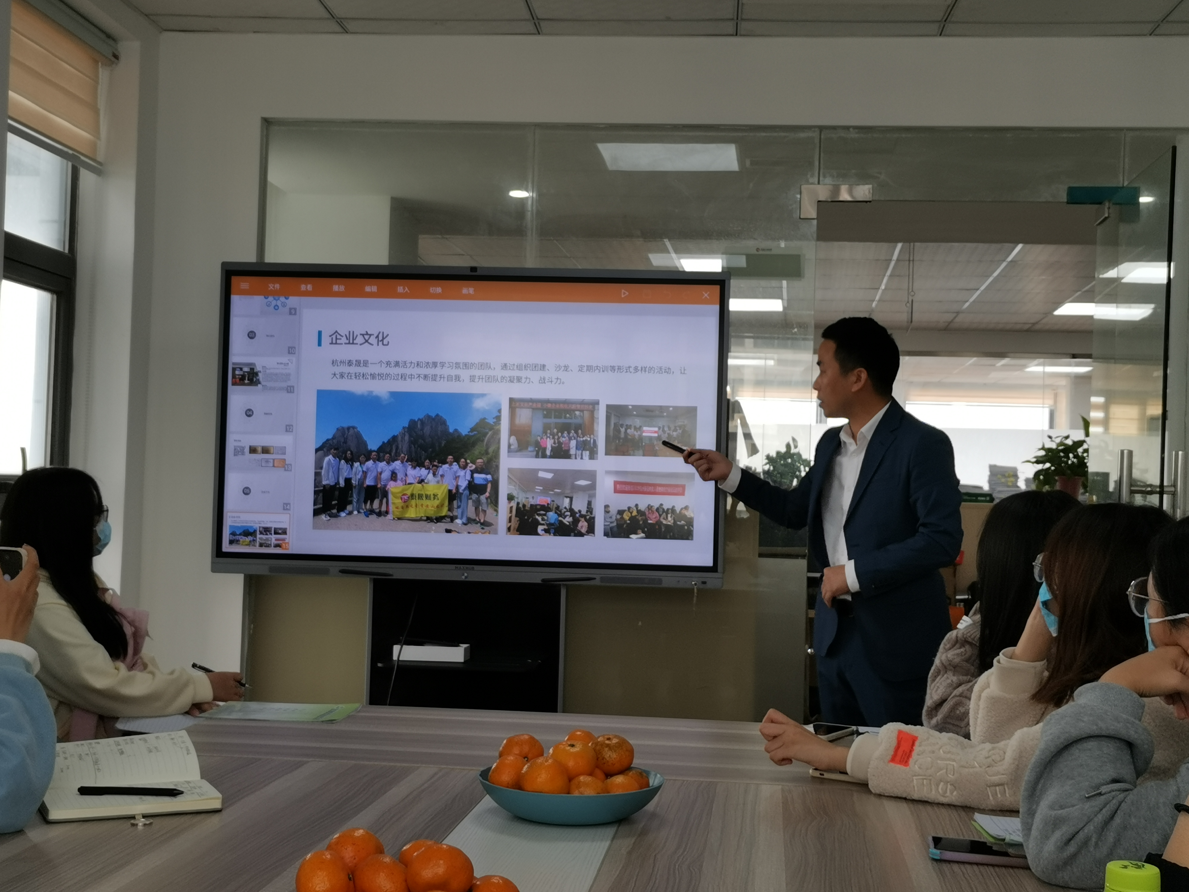 首先杭州泰晟企业管理有限公司左总经理给学生们介绍了公司的业务、年度财务工作内容、财务人员的基本职业素养、财务人员的职业生涯规划。
