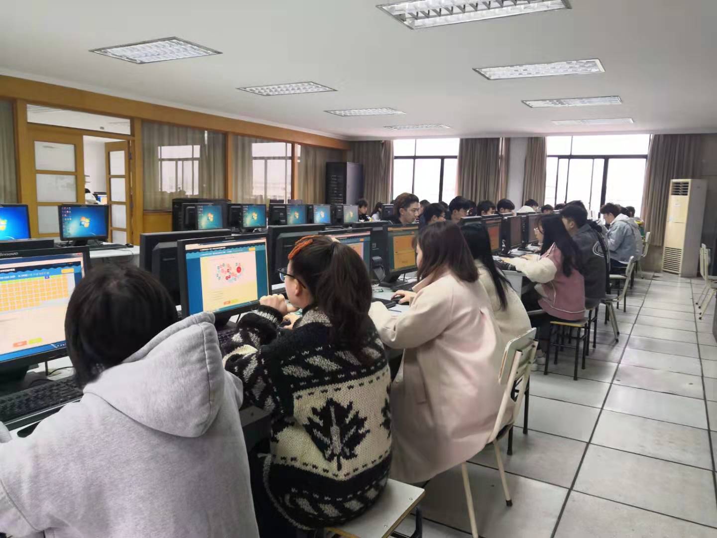 11月30日上午9:00-12:00,18级电子商务跨境电商方向的50名学生在1602和1603机房参加了2019年全国跨境电商(B2C)水平测试。