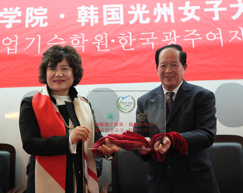 2013年12月,洪致平院长与韩国光州女子大学李善宰校长...