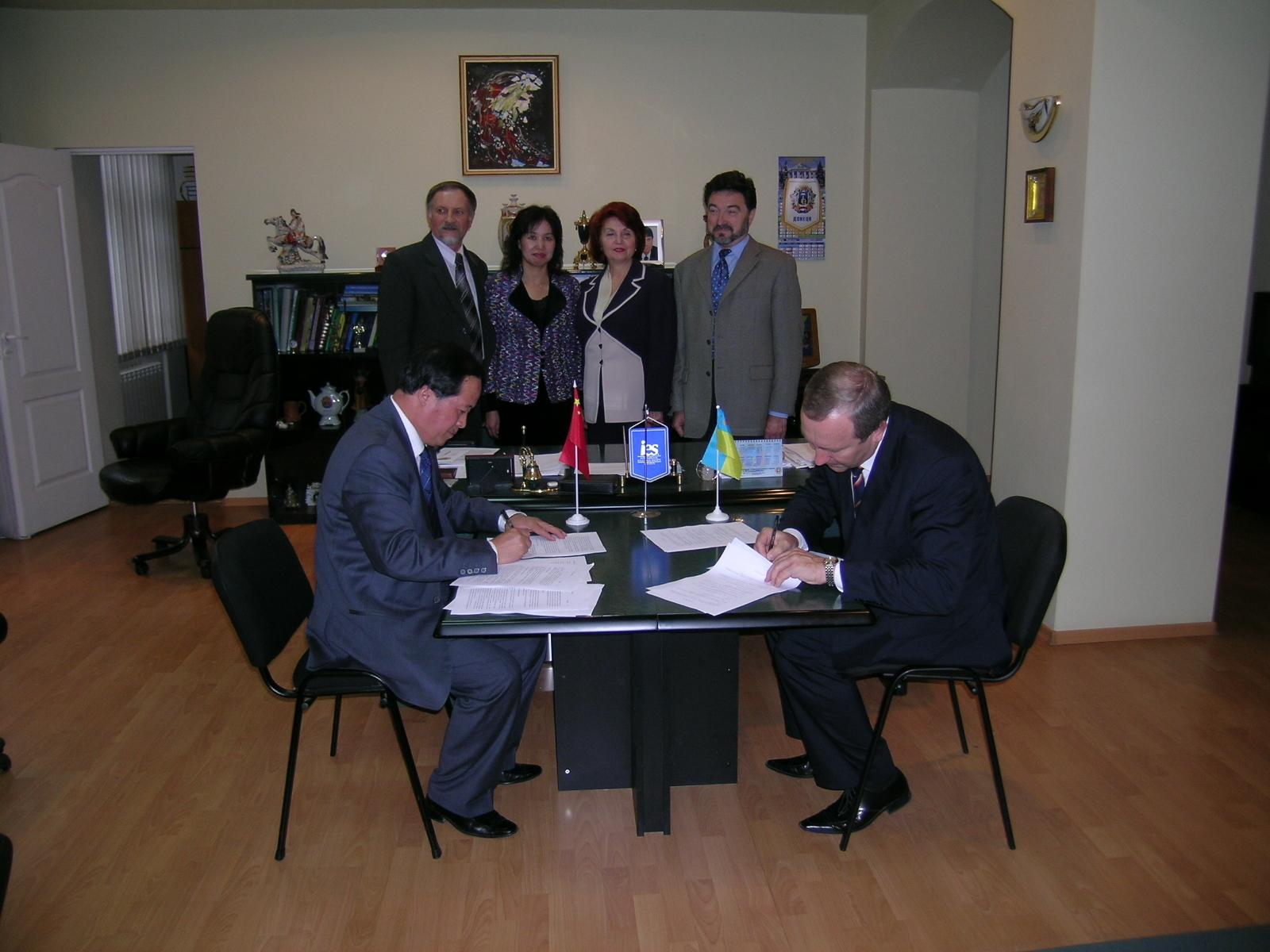 2005年10月洪致平院长与国立顿涅茨克经贸大学舒宾校长...