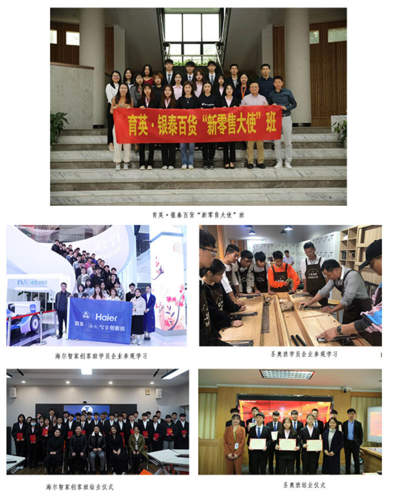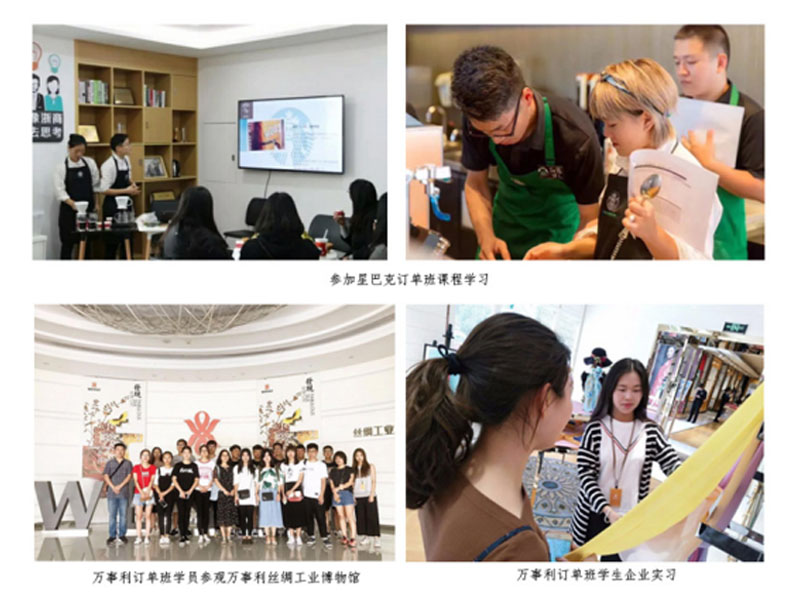 专业创新性的提出了“小微订单”和“特色企业学院”的培养模式,紧密校企合作。通过个性定制,为校企合作企业海尔、星巴克、万事利、圣奥集团、阿里银泰、联华华商、物美、麦当劳等国内外零售企业定向精细化培养营销适岗人才。同学们可以选择性的进入自己心仪的企业,集中企业和学校的优势资源,开设定制课程,设立企业奖学金,组织丰富多彩的文化活动,强化岗位技能、职业品质与企业文化的认同感,满足企业个性化人才需求。自2015年以来,培养“小微订单”学生300多人,顶岗实习率100%,岗位录用率89%。学生深得定向企业的好评。