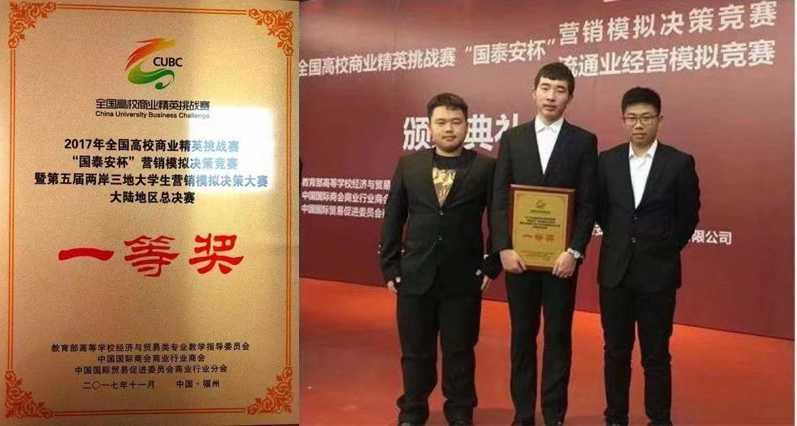 获全国高校商业精英挑战赛“国泰安杯”营销模拟决策竞赛暨第五届两岸三地大学生营销模拟决策大赛大陆地区总决赛一等奖