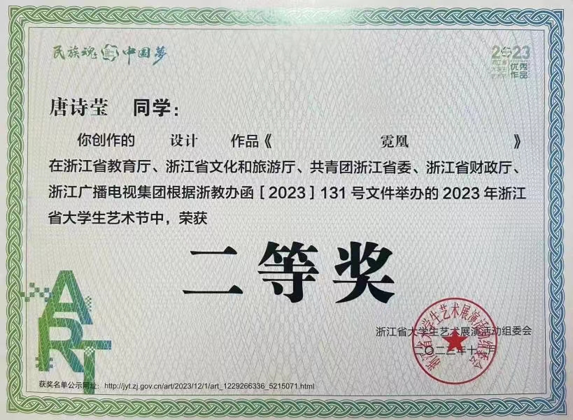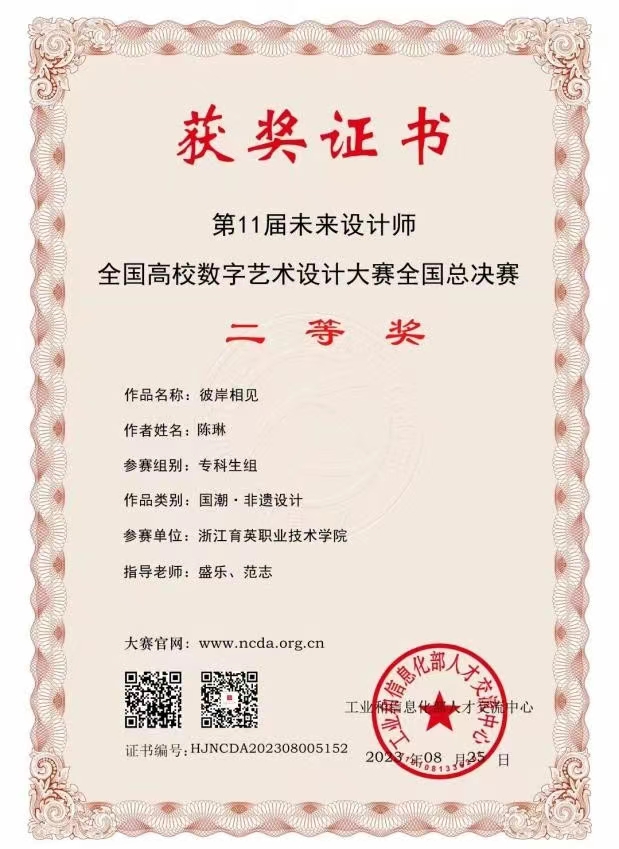 学生陈银(右一)获2023年浙江省美容美发职业技能竞赛创意晚宴化妆学生组三等奖