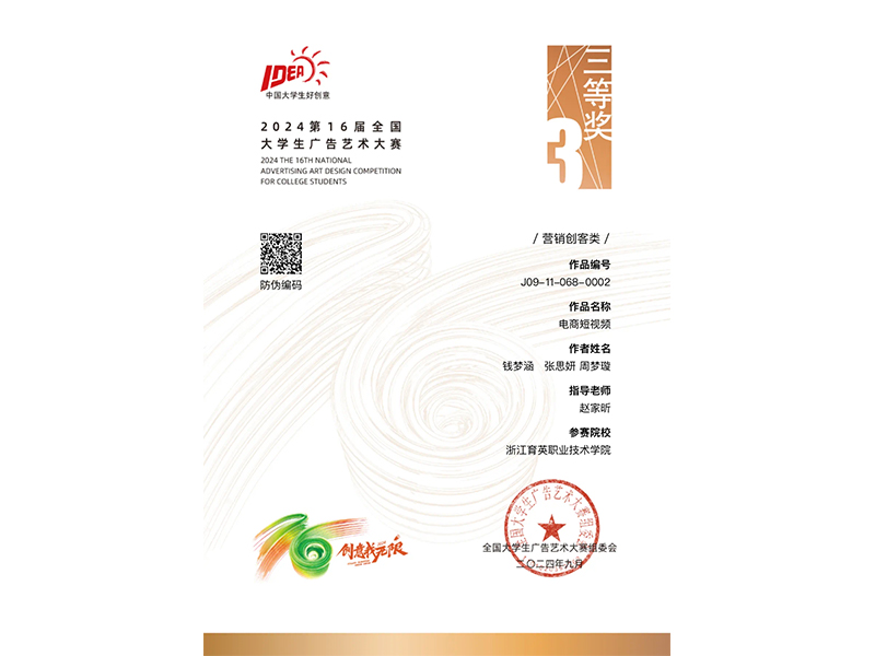 2024年 2月17日,中国教育电视台全国教育新闻联播“热点关注”栏目播出浙江育英职业技术学院人物形象设计专业相关报道。